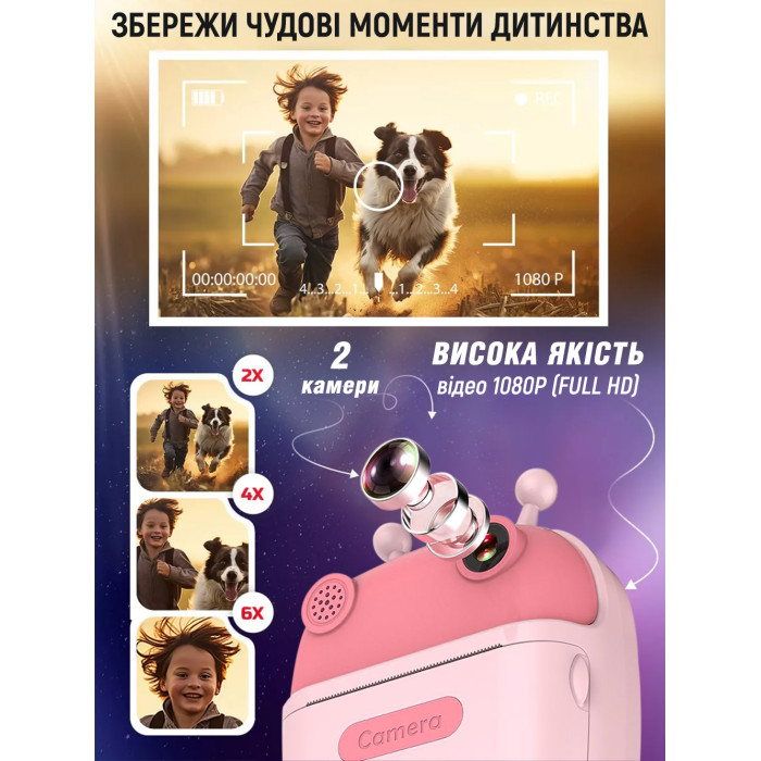 Дитячий фотоапарат миттєвого друку 5в1 + відео камера + принтер швидкий друк фото + mp3 плеєр + вбудовані ігри (Червоний) 2 рулони фотопапіру в комплекті