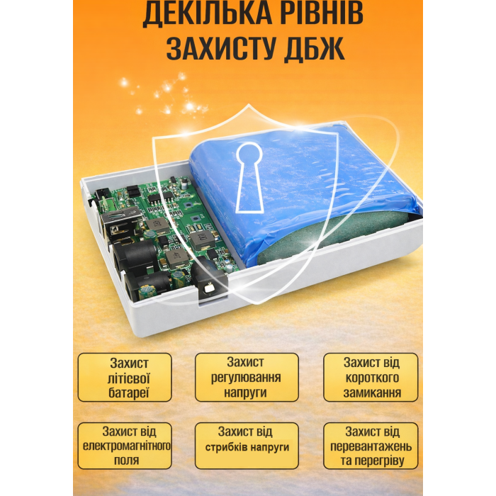 - Висока надійність: Вбудований літієвий акумулятор типу 18650 та мікропроцесорний контролер забезпечують надійну роботу та захист від перевантажень та коротких замикань.